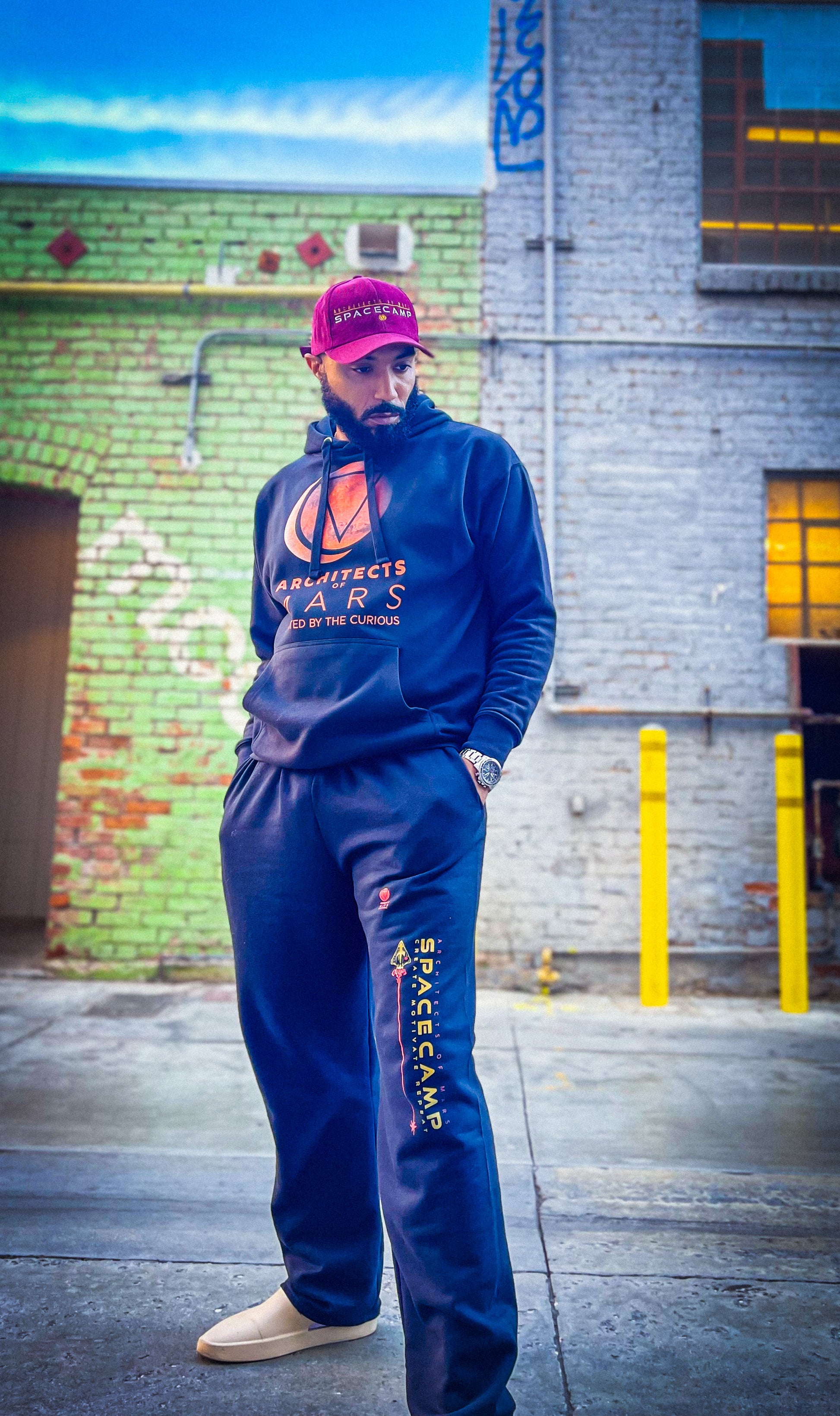 Wide leg lounge style sweatpants with Space Camp Gold logo…stylish cozy vibes…